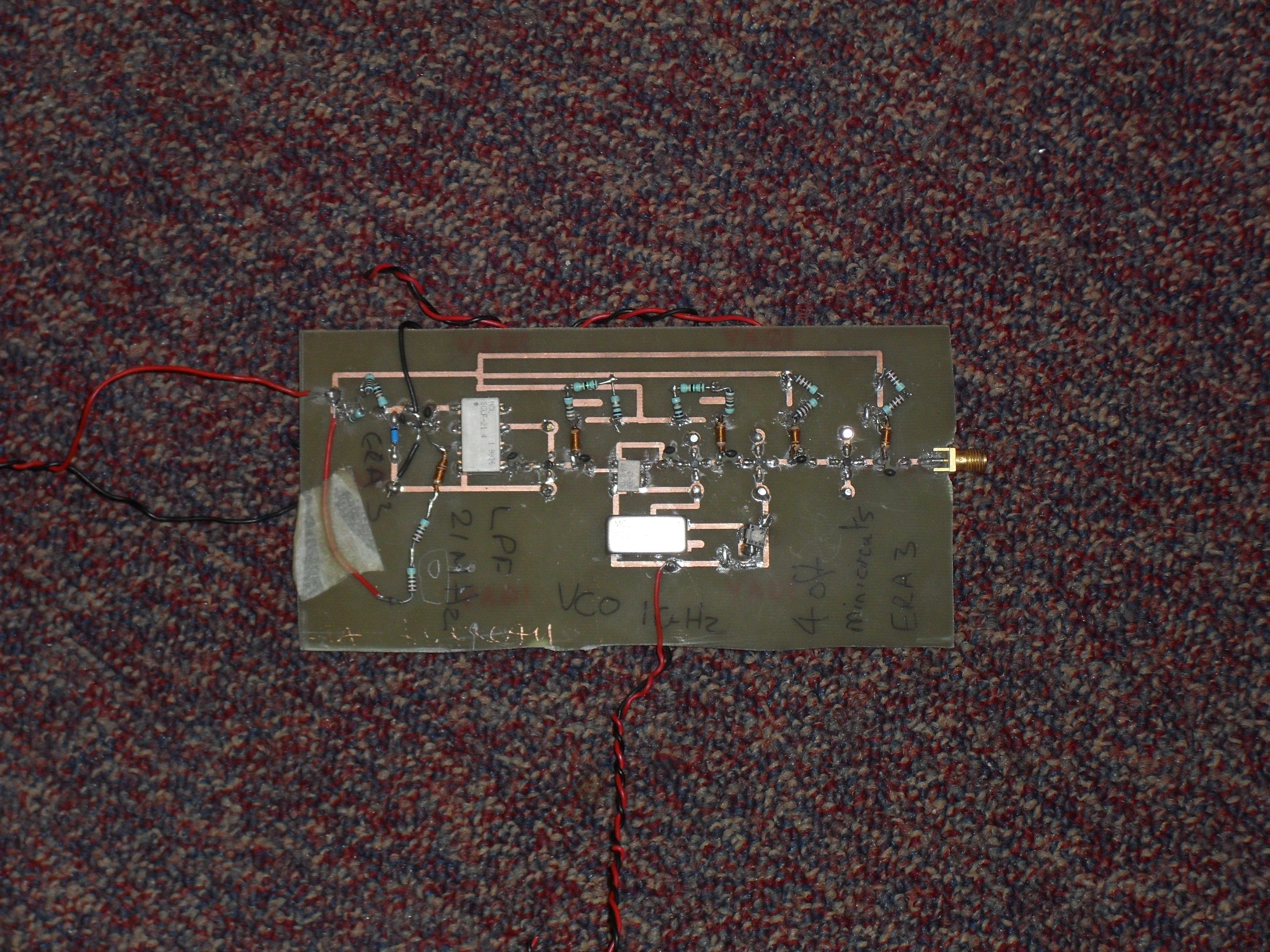 decoupling capacitors on the supply rails . The MMIC amplifiers are soldered